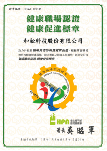 2022.02.10 通過衛生福利部國民健康署之健康職場認證