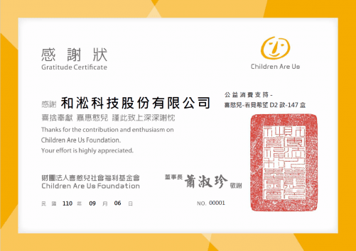 2021.09.07 榮獲財團法人喜憨兒福利基金會頒發110年度感謝狀